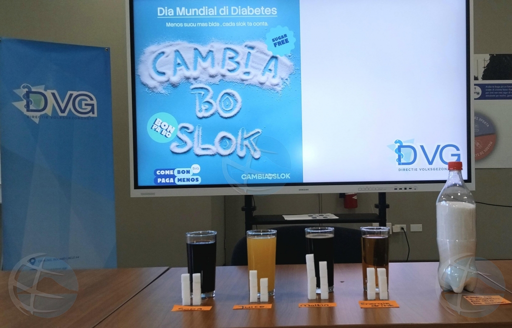 E prome tema di e campaña lo ta “Cambia bo Slok”. Den periodo di november te januari, DVG lo enfoca riba consumo di bebida cu ta contene hopi sucu.