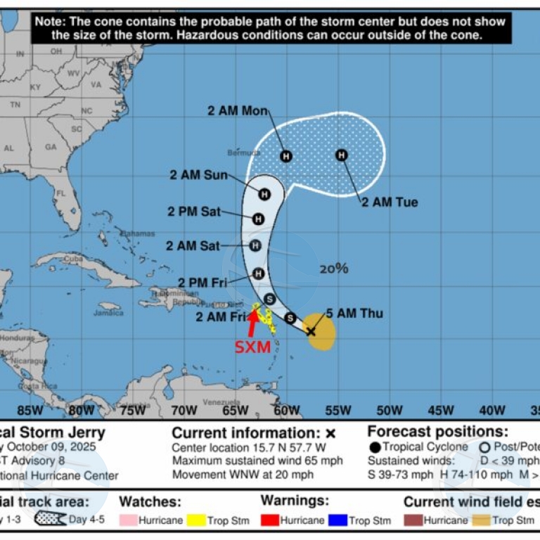 W’STAD/PHILIPSBURG – Autoridadnan na St. Maarten ta urgi cuidadanonan di e isla pa sigui progreso di tormenta tropical Jerry di aserca. Jerry a forma for di diaranson mainta y ta e di 10 tormenta cu ta haya nomber durante e temporada di horcan Atlantico 2025 cu tin potencial pa desaroya y bira un horcan.