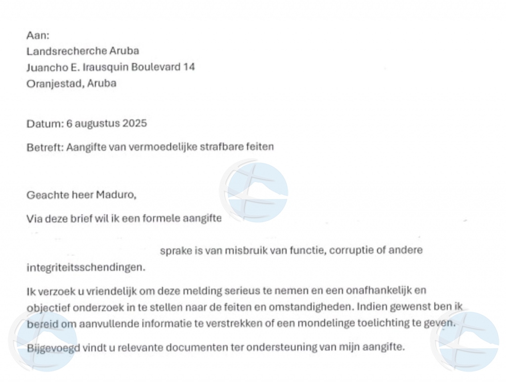Segun e minister, e deadline cu nan (MEP:red) tin cu preocupa cu ne ta esun cu e instancianan concerni di investigacion tin pa haci riba tur boso "abusonan" cometi, entre otro 9 miyon florin cu 1 bufete a gana den 6 aña di tempo. “Adhunto 1 di e varios aangiftenan cu sra. Evelyn Wever-Croes y su partido mester worry cu ne cu a ser entrega cu tur documentacion augustus ultimo. Tur esaki bou di su gabinete y liderazgo!” e ta sigui bisa. Y finalmente, “ta basta cu politica barata, ta basta cu insinuacionan infunda. Kisas consenshi ta remorde boso! Ami ta bai sigui traha pa Aruba, na su bienestar real! Ami ta traha cu amor pa mi pais, mi no mester di nada! ATA AANGIFTE KI!”.