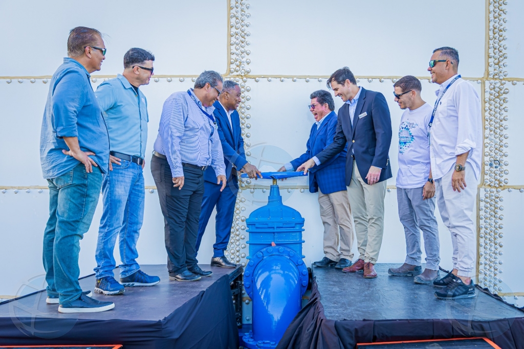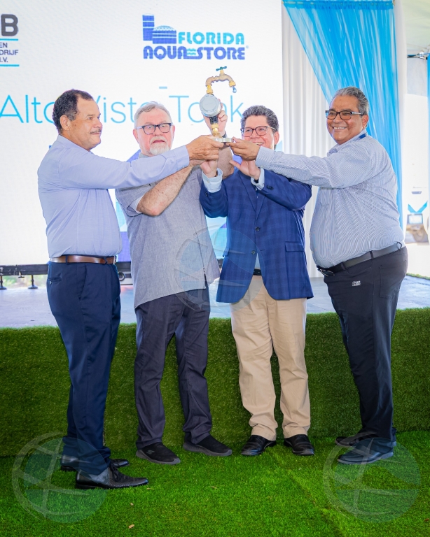 ORANJESTAD – Dia 8 di december a tuma lugar e ‘final taking over ceremony’ pa e tanki nobo di Alto Vista. Minister encarga cu energia, Arthur Dowers, hunto cu CEO di WEB Aruba y CEO di partner di proyecto, Florida Aqua Store, a habri e cranchi principal cu ta laga e awa pasa for di e tanki pa Aruba su red di distribucion di awa. E proyecto di Tanki Alto Vista nobo ta forma parti di WEB su proyecto ‘Upgrade Aruba Water Distribution Network;’ un proyecto grandi cu ta encera renobacion di tankinan, pomp y tuberia rond nos isla, pero tambe den planta di WEB. Reemplaso di e tanki di awa tawata necesario pa por keda suministra awa di bebe di calidad den area di Noord, awor y den futuro.